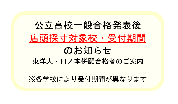 3月19日(木)より公立高校合格発表後の店頭採寸対象校をお知らせいたします。