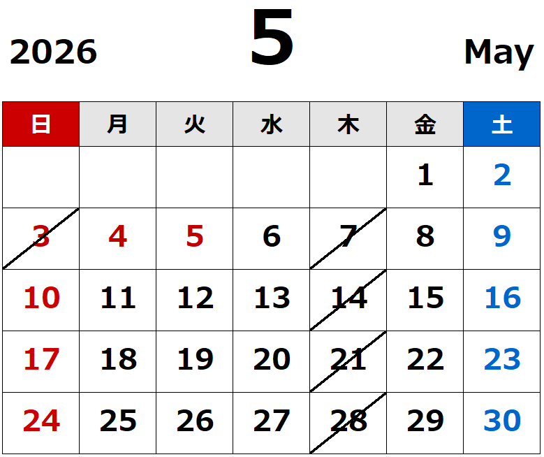 5月のお休みのお知らせです。
